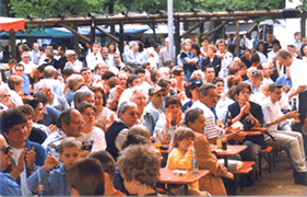 | Nach der Entstehung vom "Haus der Vereine" durch die Stadt und dem Innenausbau der Nebenräume unter Mitwirkung von fünf Vereinen - Sänger, Turner, Fanfarenzug, L'espérance und CCM - wurden auch für die Veranstaltungen im Saal Regelungen getroffen. Den Anspruch auf Nutzung der Räumlichkeiten hat vorrangig die Stadt Hattersheim, dann der Vereinsring, danach die Vereine, die nicht dem Vereinsring angeschlossen sind und erst dann Privatpersonen. Vor der Fertigstellung des "Haus der Vereine fanden alle Veranstaltungen in der Radfahrerhalle statt. |